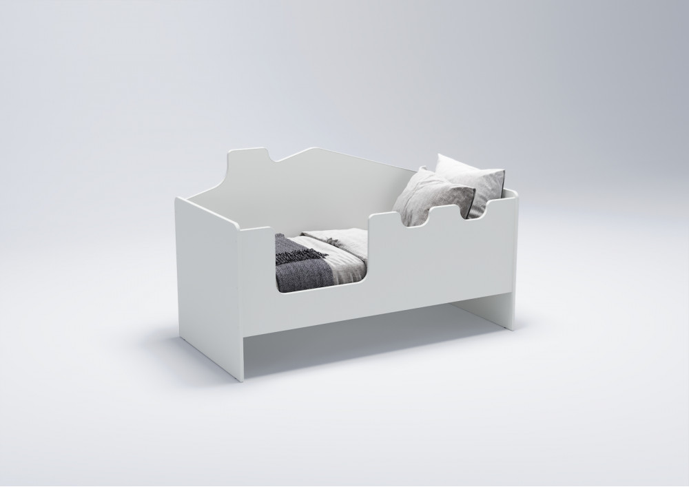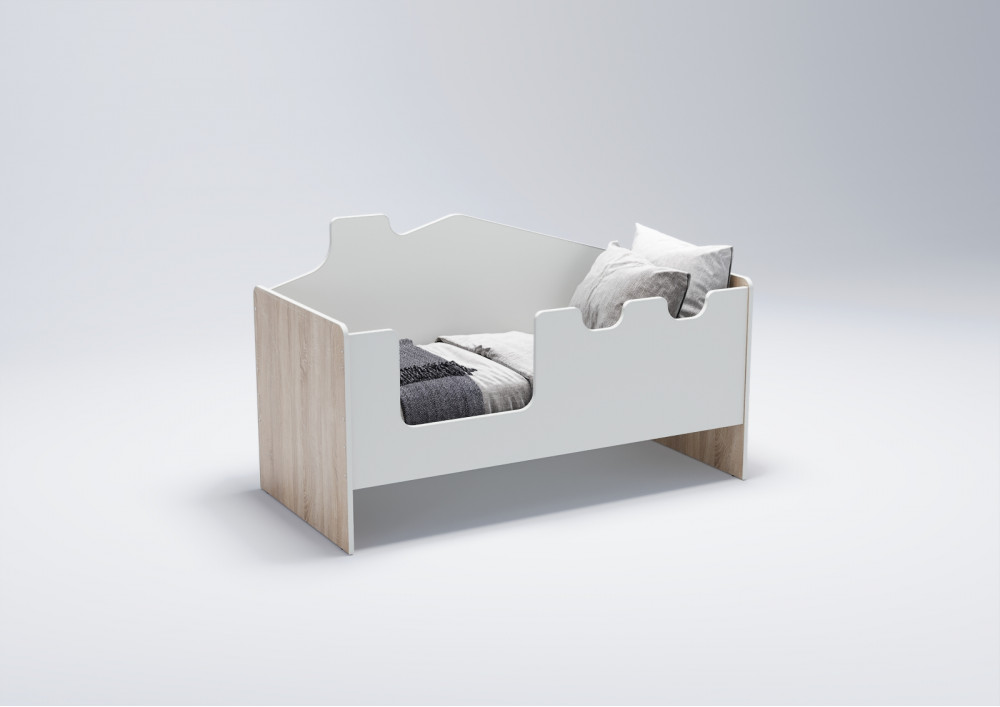 Основное внимание уделено безопасности ребенка во время сна и игр. Высокие безопасные борта кровати (высотой 521 мм) обеспечивают надежную защиту от падений во сне, а отсутствие острых углов и мягкий противоударный кант повышают безопасность использования. Задний борт кровати стилизован под домик, что создает атмосферу игры и фантазии, стимулируя развитие ребенка.